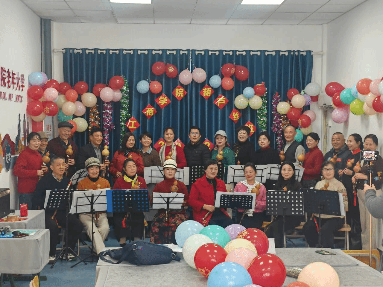 2025年12月25日上午,葫芦丝班结课活动在音乐教室举行。国际交流与继续教育学院副院长陈清清、艺术设计学院党总支副书记张乐、老年大学辅导员汪丹丹出席活动。陈清清在致辞中表示,老年大学是学员们拓展兴趣、丰富精神生活的重要平台,学校将持续支持老年教育发展,助力银龄群体实现终身学习。张乐肯定了学员们的学习热情与成果,鼓励大家保持积极心态,在艺术学习中收获快乐与成长。班级学员代表在发言中分享了学习收获,表达了对学校与老师的感谢,并祝愿老年大学越办越好。授课教师赵品芳在总结中赞扬了学员们的努力与进步,希望大家持续感受音乐之美,在生活中延续学习带来的快乐。