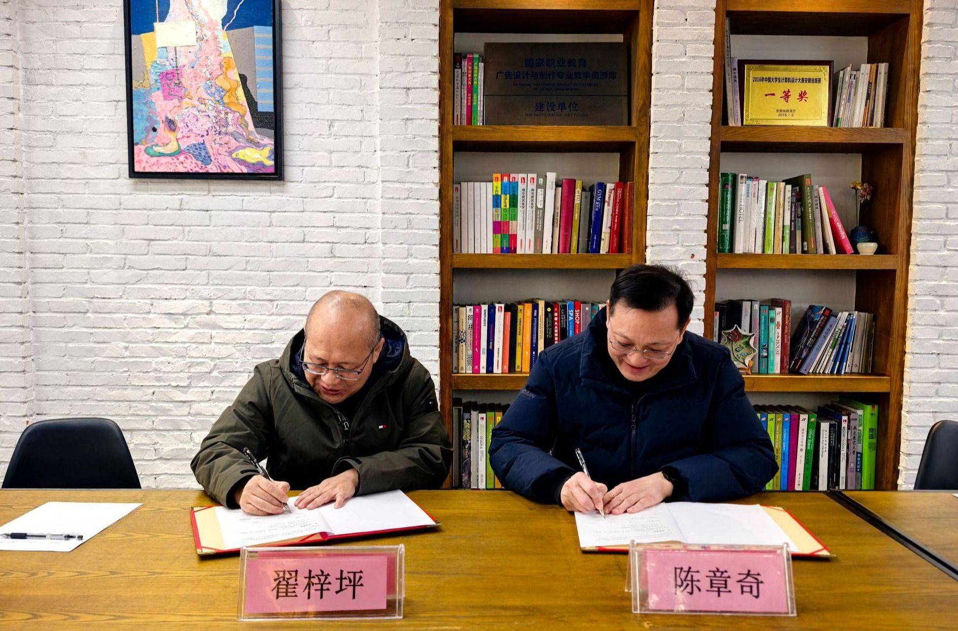 随后,陈章奇与翟梓坪代表校企双方正式签署《AIGC微短剧产学研基地合作协议》并合影留念。