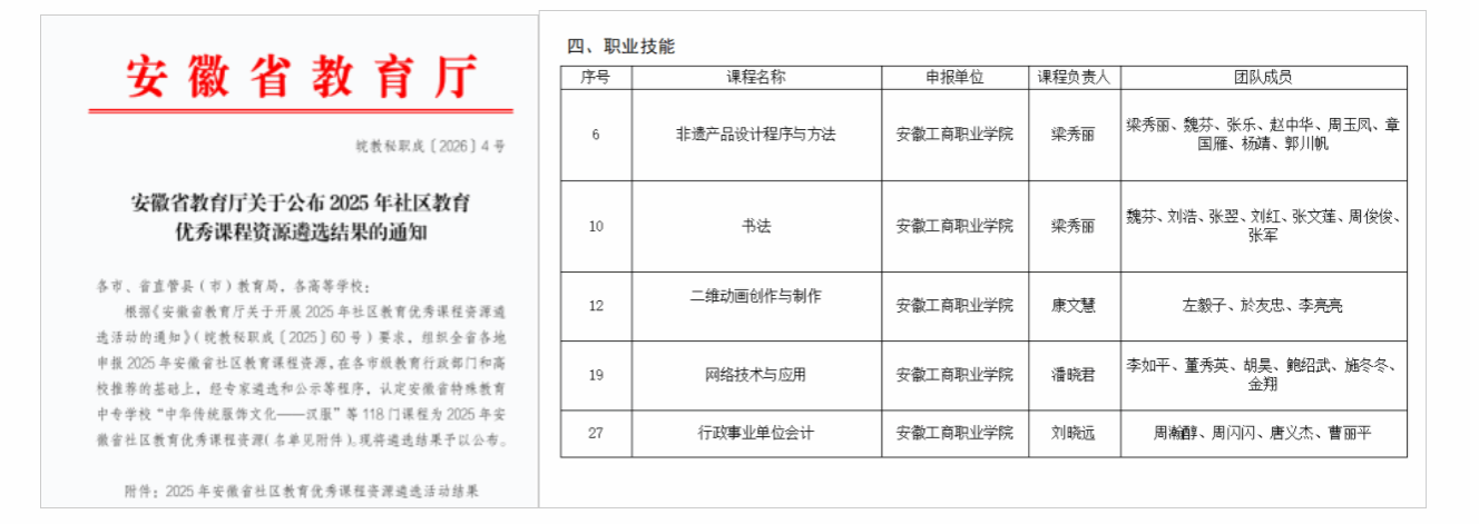 在课程资源建设方面,学校积极融入安徽省继续教育网络园区,组织专业团队进行课程数字化改造与资源推送,2025年学校共有5门社区课程获评“省级优秀课程资源”,同时开发的多门特色工匠课程已上线全国总工会“职工之家”APP,实现优质资源跨平台共享。