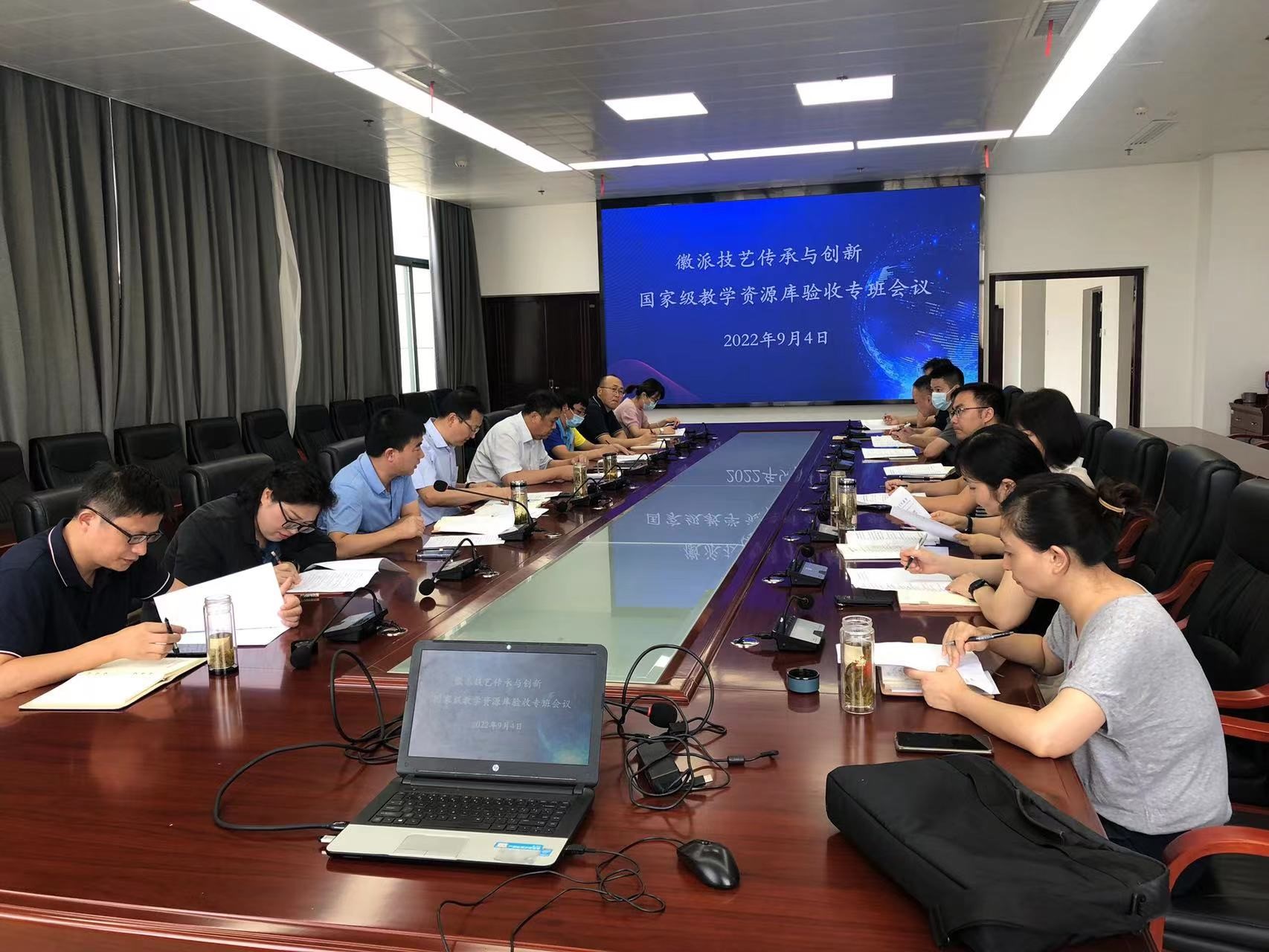 徽派技艺传承与创新教学资源库是我省目前唯一牵头主持的国家级教学资源库,建好本项目意义重大、影响深远。学校高度重视,措施得力,组建资源库建设领导小组,设立资源库建设工作办公室,以教务处为牵头部门,联络共建单位、举办共建共享研讨会议。项目验收阶段,成立验收专班,校长李雪、副校长陈章奇等校领导亲自带领项目建设团队,分解任务,对标对标资源库建设任务书、验收评议重点和指标,坚持“每周一检查、每周一通报,每周一会商”工作机制,强力高效推进验收各项工作。验收专班在短短1个月的时间内,完成收集材料、采集数据、整理财务单据、撰写建设报告、准备答辩事宜等各项工作,数次研讨,反复修改材料,每一份材料、每一组数据都倾注了大量心血。