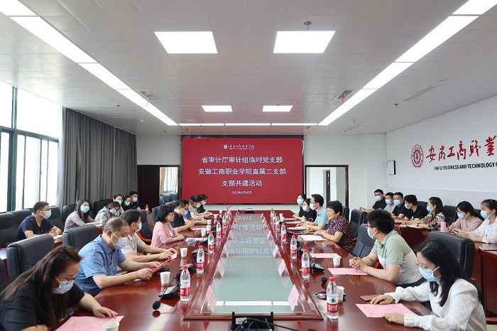 5月30日下午,省审计厅审计组临时党支部与安徽工商职业学院直属第二党支部联合开展了 “党建引领促发展,审计监督见成效”的主题党日活动。省审计厅审计组副组长疏奕,省审计厅审计组主审张晖、审计组临时党支部全体党员和直属第二党支部全体党员参加活动。