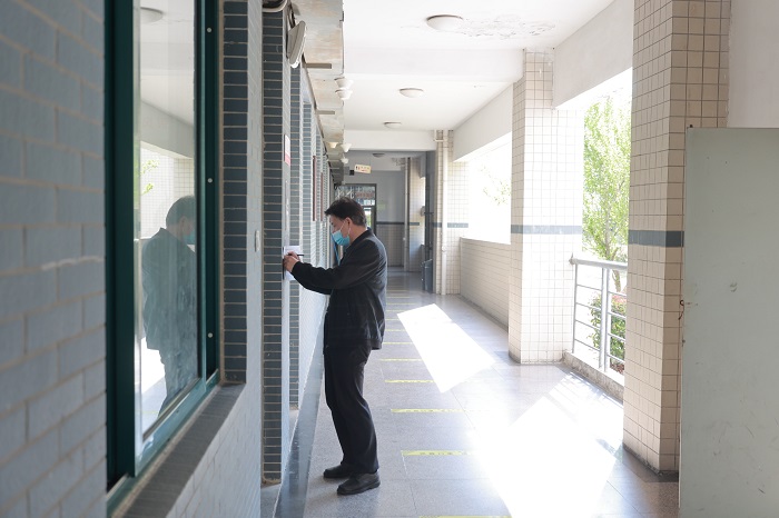 教学巡查后,学校领导来到核酸检测新场地,慰问一线工作人员和志愿者,实地查看核酸采样点区域分布、后勤服务保障、现场秩序维护、防控措施落实等情况,并现场协调解决存在的困难问题。学校领导强调,一要思想上高度重视,疫情防控事关大局,各部门要协同配合,认真把控每个环节,确保疫情防控各项工作落实落细;二要进一步优化现场条件,落实好关心关爱措施;三要密切关注师生的健康状况,全面织密扎牢疫情防控网。(撰稿人:赵雪梅 审核人:周新春)