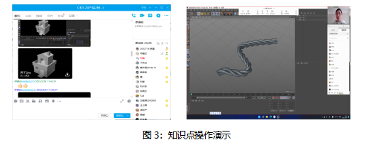 《CINEMA 4D》课程不仅需要详细的讲解,更注重直观展示操作方法。何倩云老师根据教学需求调整教学策略,使用直播加屏幕实时分享的方法,将每个知识点和技能点通过屏幕进行演示操作,并在操作演示后及时让学生进行巩固练习,并线上指导,通过增强线上师生互动,加深学生对技能知识点的掌握。直播结束后利用分享学习笔记、云端畅聊经验和心得等方式,培养学生自主学习的能力。