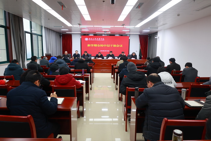 2月18日下午,学校在综合楼二号会议室召开全体中层干部会议,总结过去一年工作,分析当前发展形势,部署动员新学期重点任务。校领导及党委委员李雪、陈行、黄继胜、胡捍东、陈章奇、王辉、刘浩出席会议,全体中层干部及相关部门负责人参加会议,会议由党委副书记陈行主持。