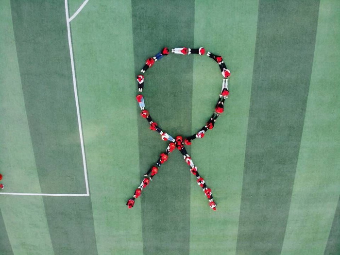 11月27日上午八点在操场由志愿者们排列组合出12·1的字样和艾滋病防治标识等一系列图案,照片由无人机在高空拍摄,通过一些世界第一大赌场,澳门金沙城中心艾滋的图案让学生从另一个角度看待艾滋。