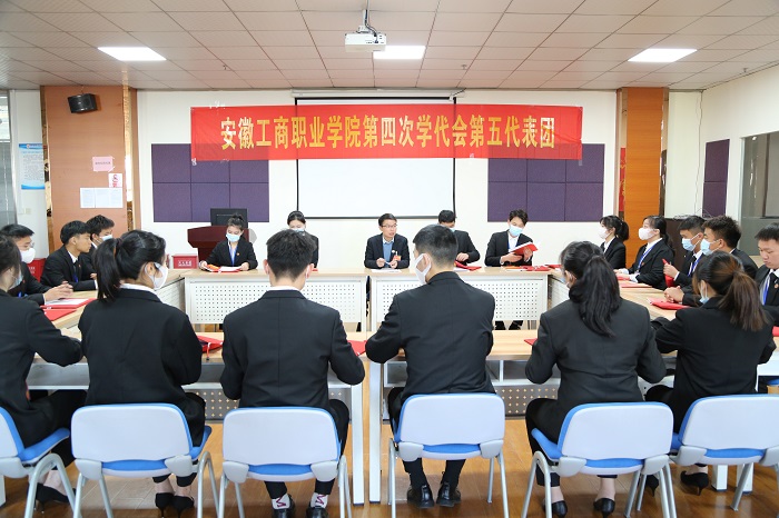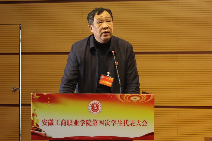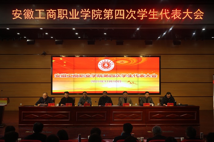 2021年11月10日,安徽工商职业学院第四次学生代表大会在学术报告厅隆重举行。学校领导李雪、屈山林、汪贤武、张智清、黄继胜出席了开幕式,校党委委员、各二级学院党总支书记、院长及相关行政处室负责人应邀出席了开幕式,129名学生代表参加了大会。会议由党委宣传统战部长刘浩主持。安徽职业技术学院、安徽财贸职业技术学院、安徽水利水电职业技术学院等26所兄弟院学生会发来贺信贺电。