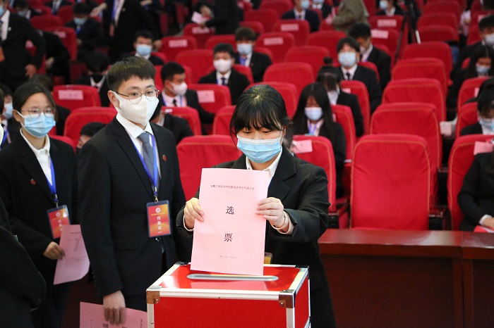 闭幕式后,新当选的第十八届学生委员会成员在学术报告厅二楼会议室召开了第一次全体会议,选聘了学生会执行主席和秘书长。(文/刘乐;审/赵艳)