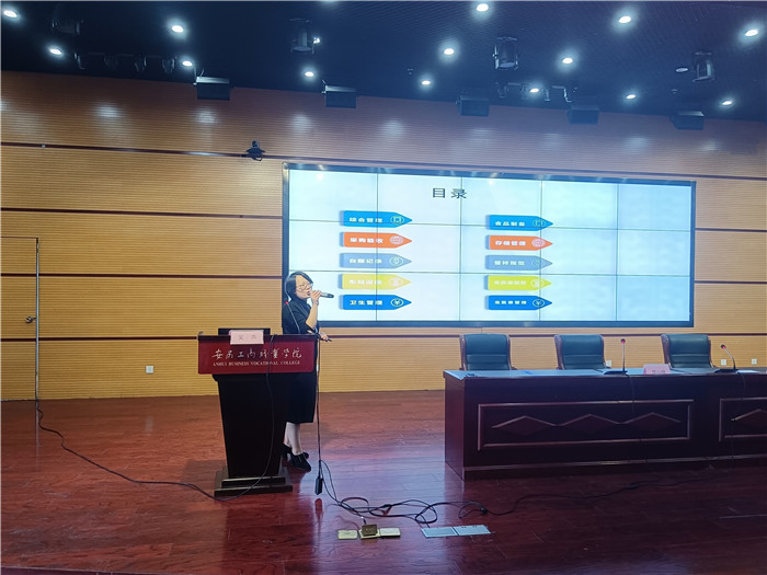 为加强学校食品安全监管工作,提升食品从业人员的风险防范意识和规范操作意识,增强从业人员的法律观念和相关知识技能,提高学校的食品安全监管能力和水平。10月8日下午,学校特邀请安徽众安第三方食品安全监管服务有限公司总经理吴燕为学校食堂从业人员进行食品安全知识专项培训。培训在双凤校区学术报告厅举行,校党委委员、副书记屈山林、后勤服务中心相关工作人员、食堂食品经营管理者、食品安全监督管理员及相关从业人员95人参与此次培训,培训会由后勤服务中心副主任陈松主持。