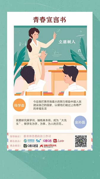 无论是在革命年代,还是在建设年代,每一代人都在用实际行动书写自己的青春宣言书。“怕死不当共产党员!我死也不自白,决不投降”是刘胡兰的青春宣言书;“敌人只能砍下我们的头颅,决不能动摇我们的信仰”是方志敏的青春宣言书;“宁可少活20年,拼命也要拿下大油田”是王进喜的青春宣言书;“今后我打算尽我最大的努力帮助中国人民建设自己的国家,以便他们能过上有尊严的幸福生活”是钱学森的青春宣言书。