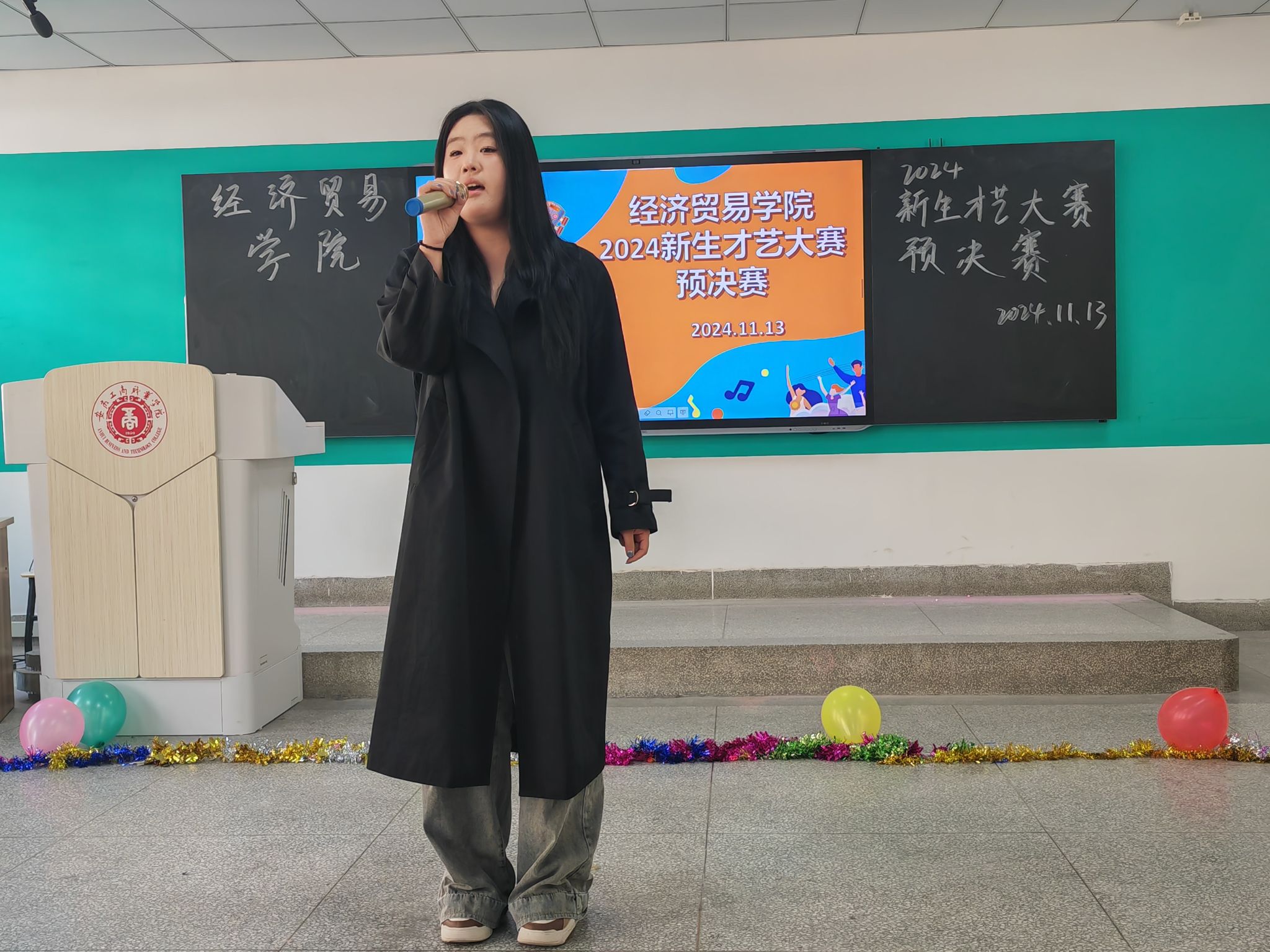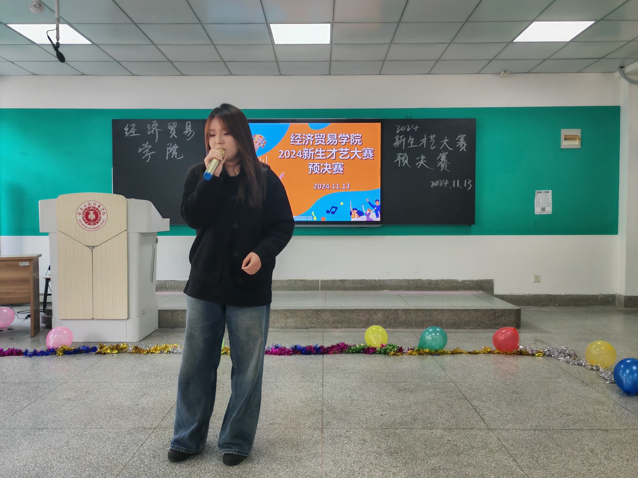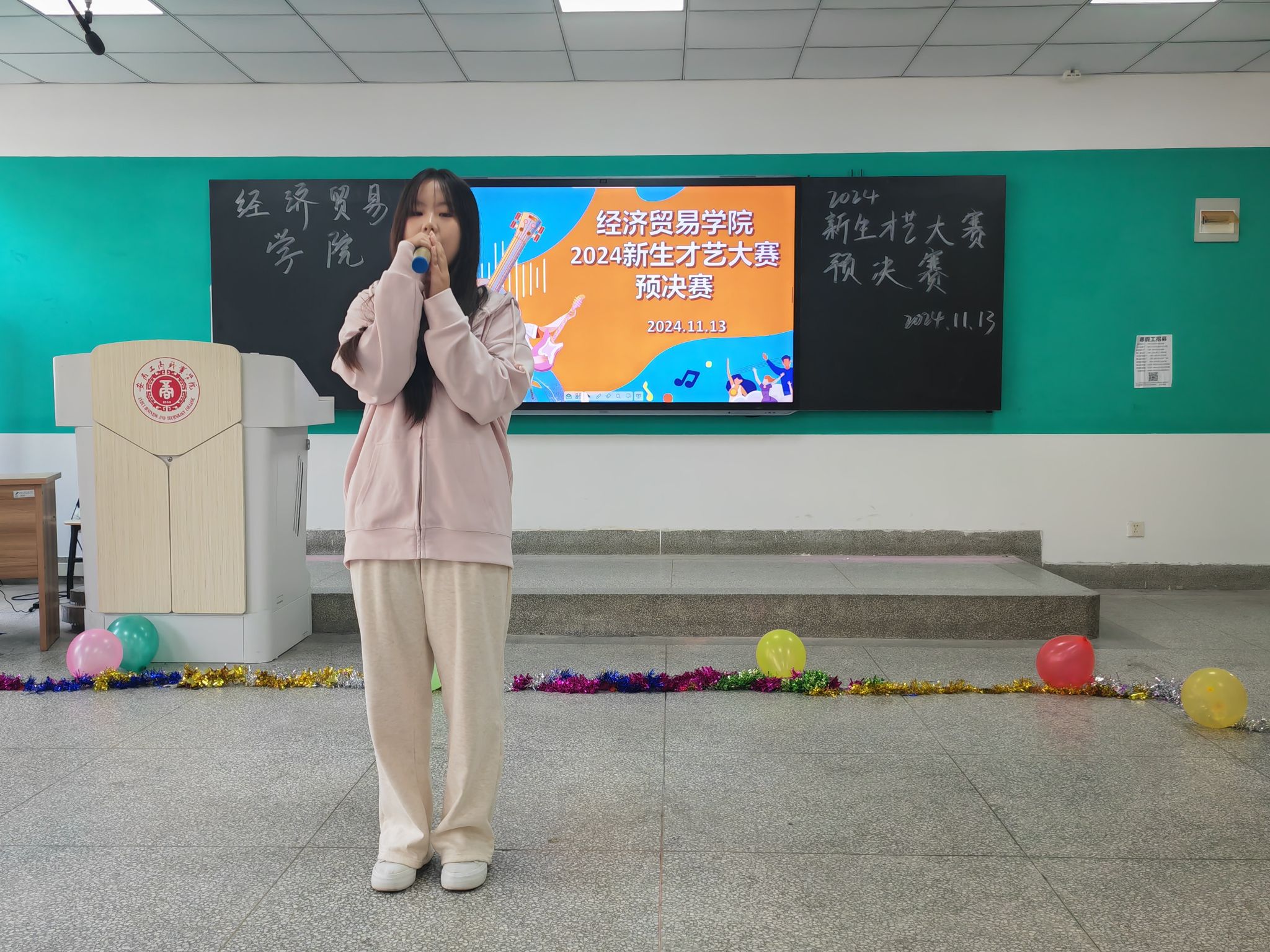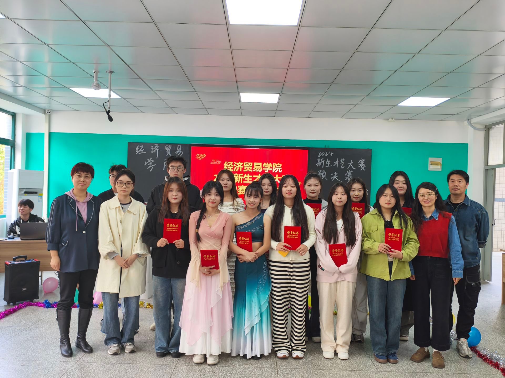 韶华不负启新程,青春作笔书华章;为丰富大学生校园文化生活,给新生提供一个展示自我、施展才华的舞台,促进彼此之间的交流与融合,11月14日经济贸易学院在B205教室举行“怦然‘新’动,‘才’华横溢”——新生才艺大赛,学院团总支书记邬金,辅导员朱清涟、支凤宁、刘雨梅和部分学生干部担任本次比赛评委,学院各专业学生观看了本次新生才艺大赛。