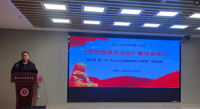 蒋强军作总结发言。他表示,此次集体备课会充分体现了授课教师对课程教学的深入研究和积极探索,为上好《思想道德与法治》课打下了扎实基础,助力讲深讲透讲活思政课。他鼓励所有教师在教学中要及时更新教学内容,结合学生专业特点,改革教学方法,增强学生对思政课的获得感。