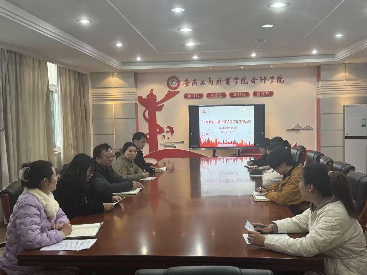2024年12月4日,为深入贯彻学校基层党建工作要求,会计学院紧密结合学院工作实际,以党支部为单元,成功举行了12月教职工政治理论学习会议。