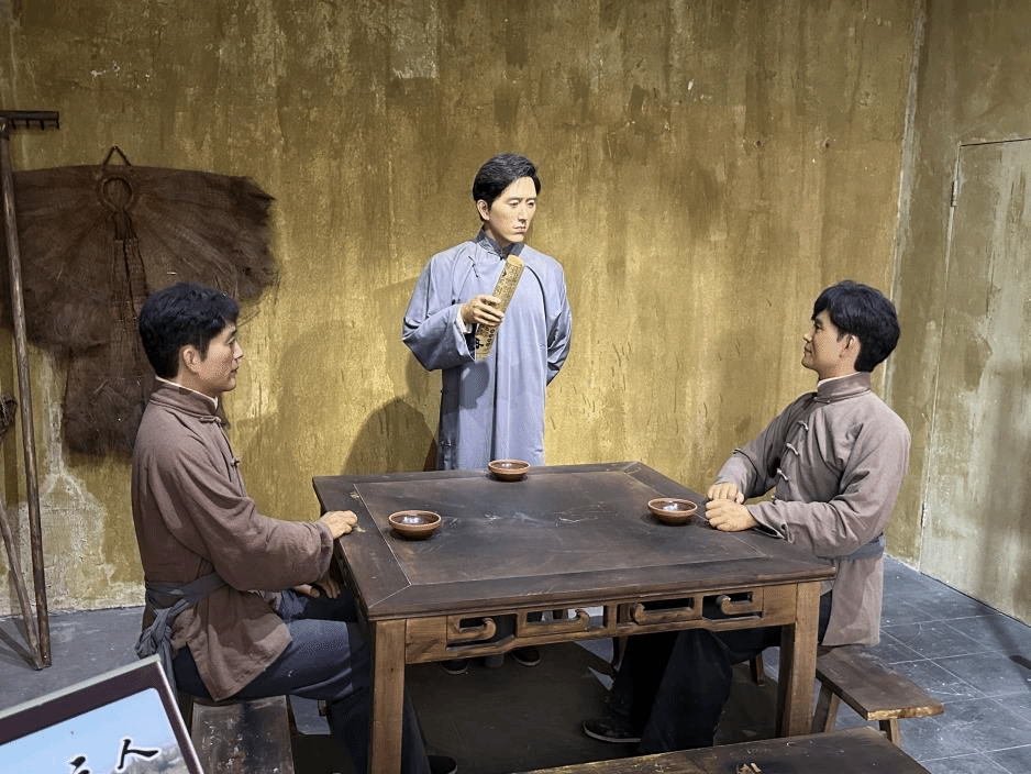 在纪念馆内,团员们通过历史文物、档案文献和图文展板,系统了解了中共合肥北乡支部的创建背景与革命历程。1926年9月,崔筱斋、曹广化等革命先辈在此秘密成立合肥地区首个党组织,领导双河集农民暴动,点燃了合肥革命斗争的星星之火。纪念馆内复原的支部旧址、崔筱斋亲手编写的《帮工歌》手稿,以及双河集暴动中使用的长矛、大刀等实物,生动再现了那段烽火岁月。团员们驻足于崔筱斋烈士雕像前,聆听讲解员讲述其革命事迹:从接受马克思主义启蒙,到组建游击队抗击敌军到英勇就义,崔筱斋“为穷人打天下”的初心与牺牲精神,令在场团员深受触动。