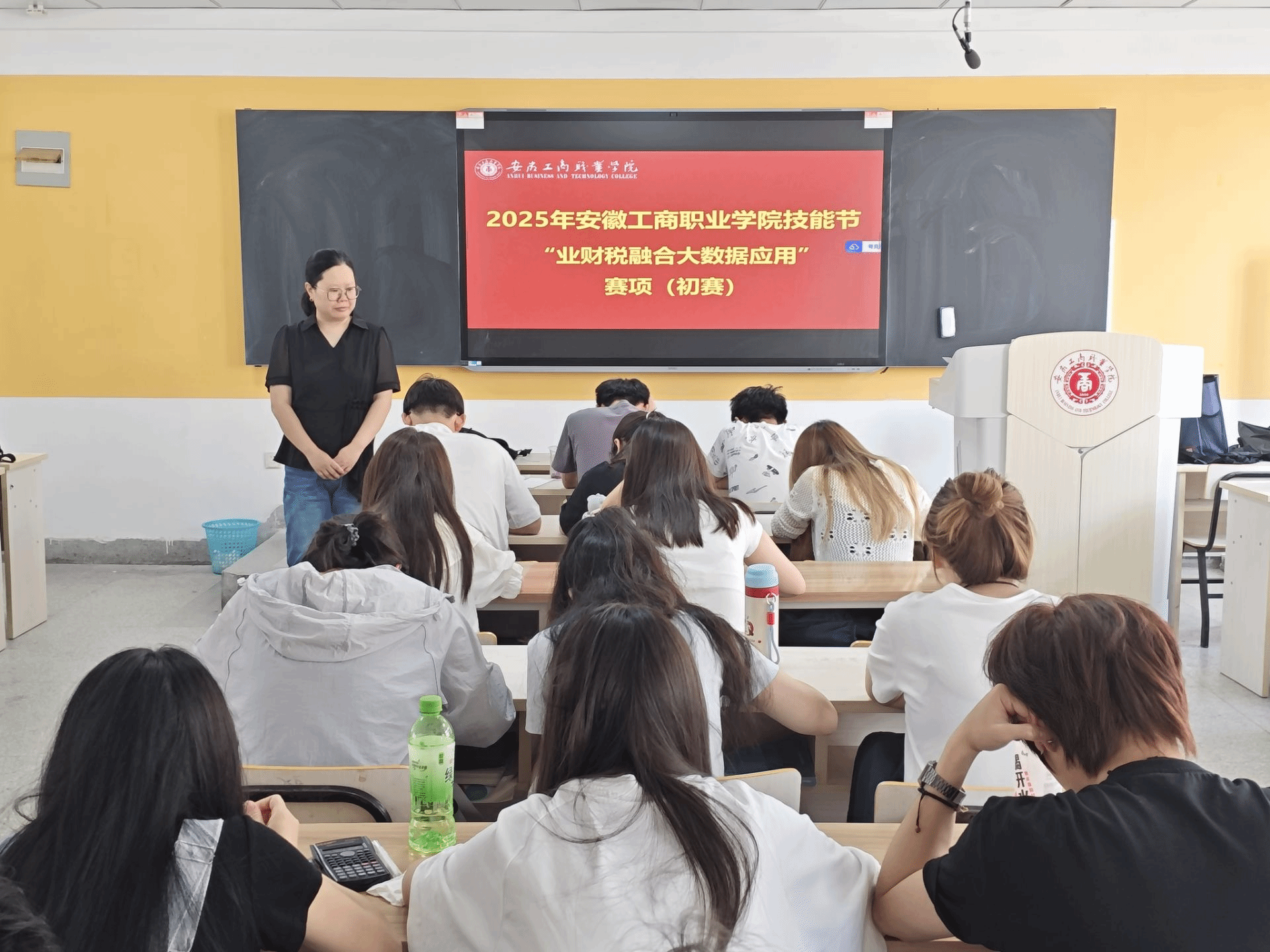 2025年6月12日,安徽工商职业学院第十一届技能节“业财税融合大数据应用”赛项决赛在双凤校区C301、C302教室顺利举行。