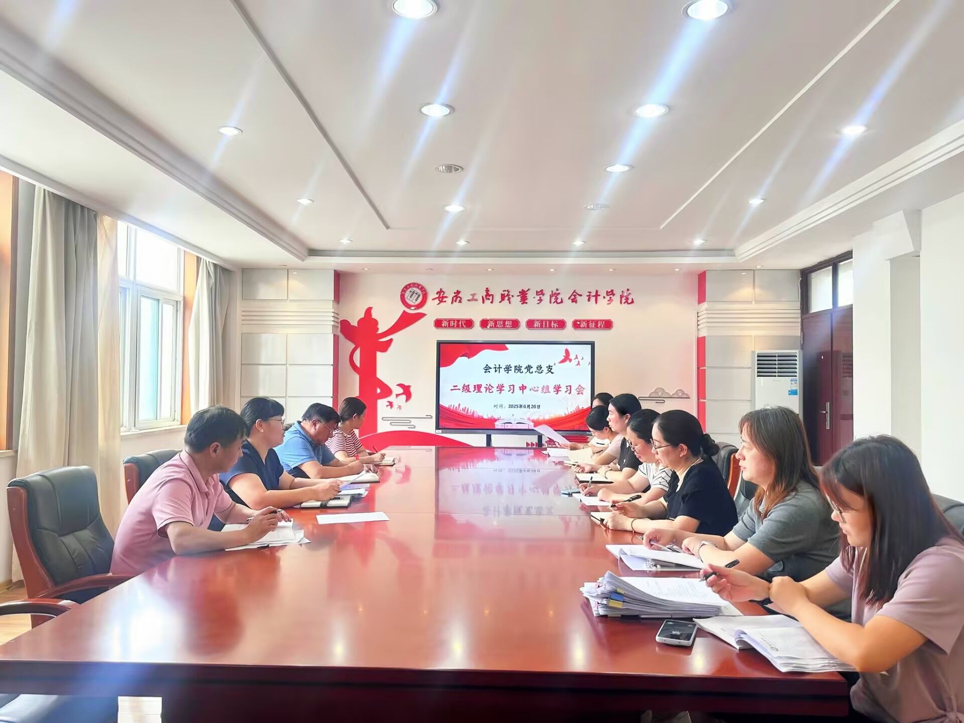6月26日中午,会计学院党总支在明德楼二楼党建会议室召开6月理论学习中心组学习会。学院党总支委员和党支部书记参会,会议由学院党总支书记赵艳主持。