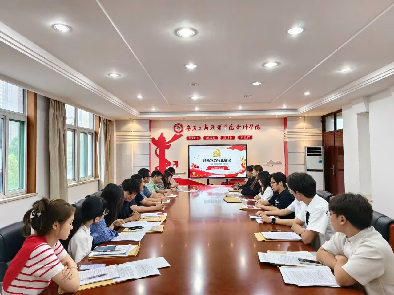 2025年6月26日,会计学院学生第一、第二、第三、第四党支部分别在明德楼党建会议室及二号会议室召开预备党员转正大会。各党支部书记主持会议,各支部正式党员与预备党员参会。