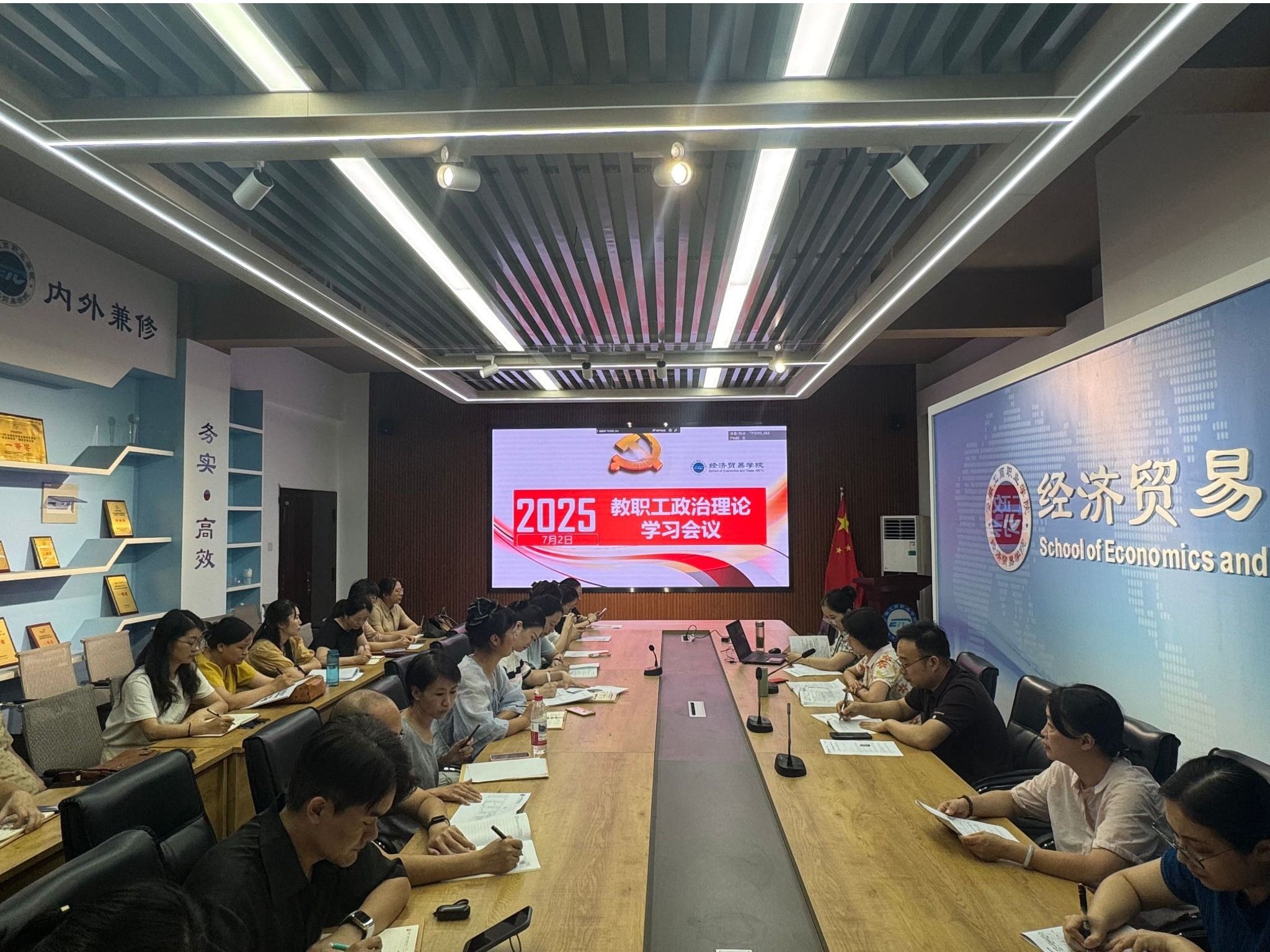 7月2日,经济贸易学院党总支在5楼教师能力提升中心召开教职工政治理论学习会议,会议由党总支副书记马莉主持,全体教职工参加会议。