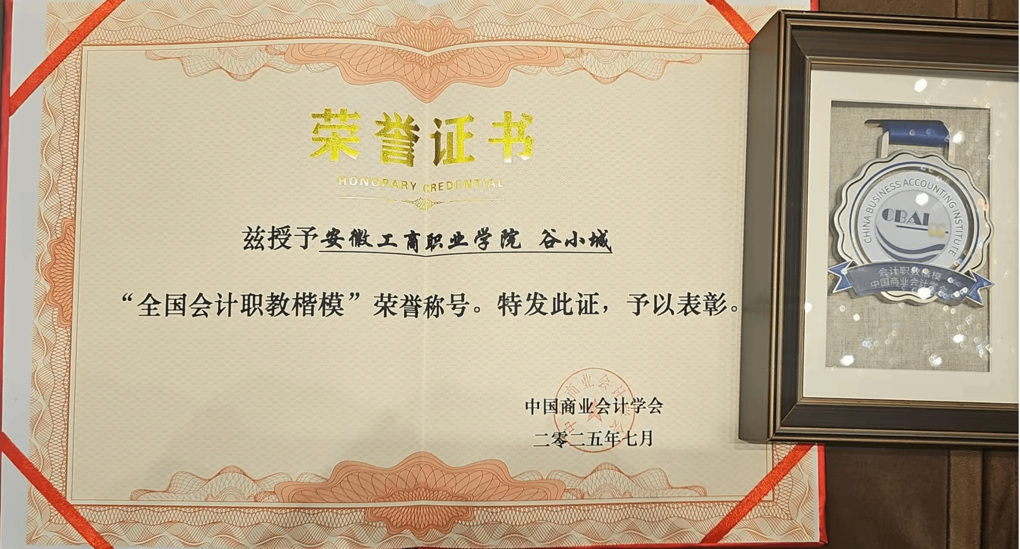 此次获奖是会计学院深入贯彻全国职业教育大会精神、落实立德树人根本任务的生动缩影。学院将以此为契机,号召全体教师以谷小城老师为榜样,将教育家精神融入教育教学全过程,在深化产教融合、服务国家战略中展现更大作为,为建设教育强国、技能型社会贡献智慧力量。(撰稿:余想花 一审:余想花 二审:李峰 三审:赵艳)
