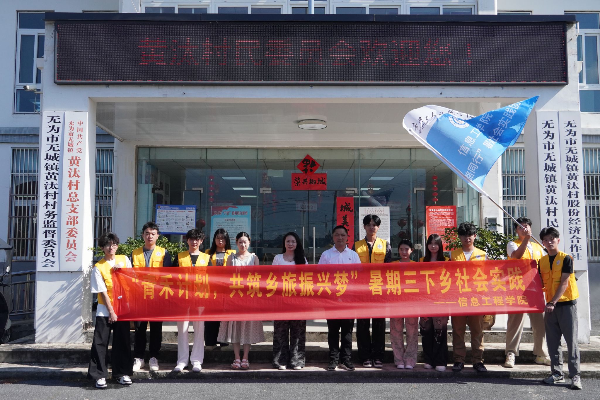 7月7日,信息工程学院“E路同行”暑期社会实践团队在团总支书记胡梦佼老师的带领下,12名成员怀揣服务人民的热忱,在安徽省芜湖市无为市无城镇黄汰村的大力支持下,开展为期六天以“科技助力乡村旅游发展”为主题的“青禾计划,共筑乡旅振兴梦”暑期三下乡社会实践,旨在发挥学院专业优势,以实际行动助力乡村振兴,为黄汰村的发展注入青春动能。