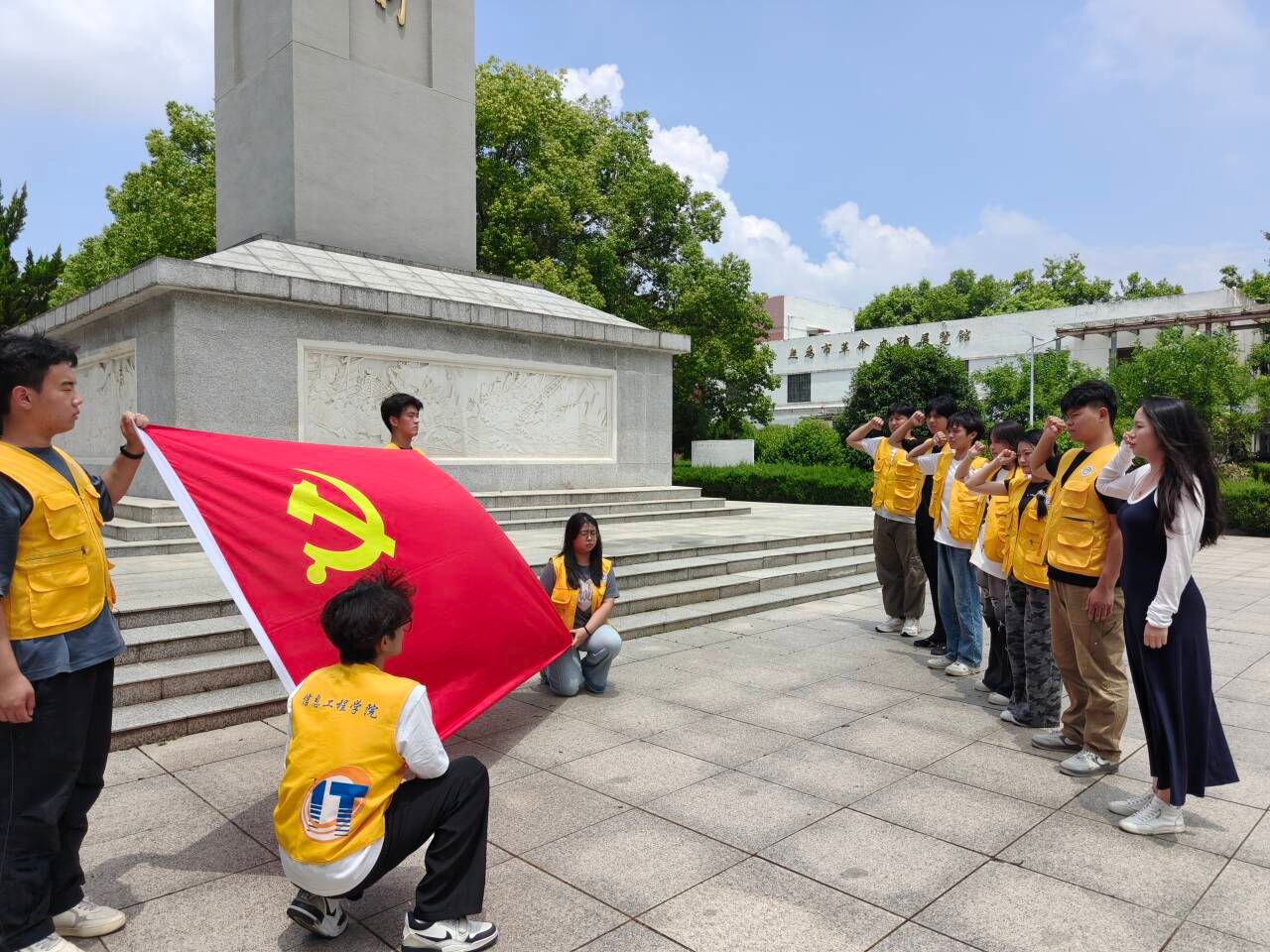 活动最后一天,全体团队成员怀着无比崇敬的心情,踏上了前往无为市烈士陵园的行程。到达陵园后,大家在庄严肃穆的纪念碑前整齐列队,团队全体党员共同重温入党誓词。通过这一庄严的仪式,大家深刻表达了对革命先烈们无私奉献、英勇牺牲精神的崇高敬意和无限缅怀。随后,团队召开了对六天实践活动的现场总结会,大家纷纷表示,愿意以实际行动践行青春誓言,为祖国的乡村振兴事业贡献出自己的青春力量,让青春在奋斗中绽放出更加绚丽的光彩。