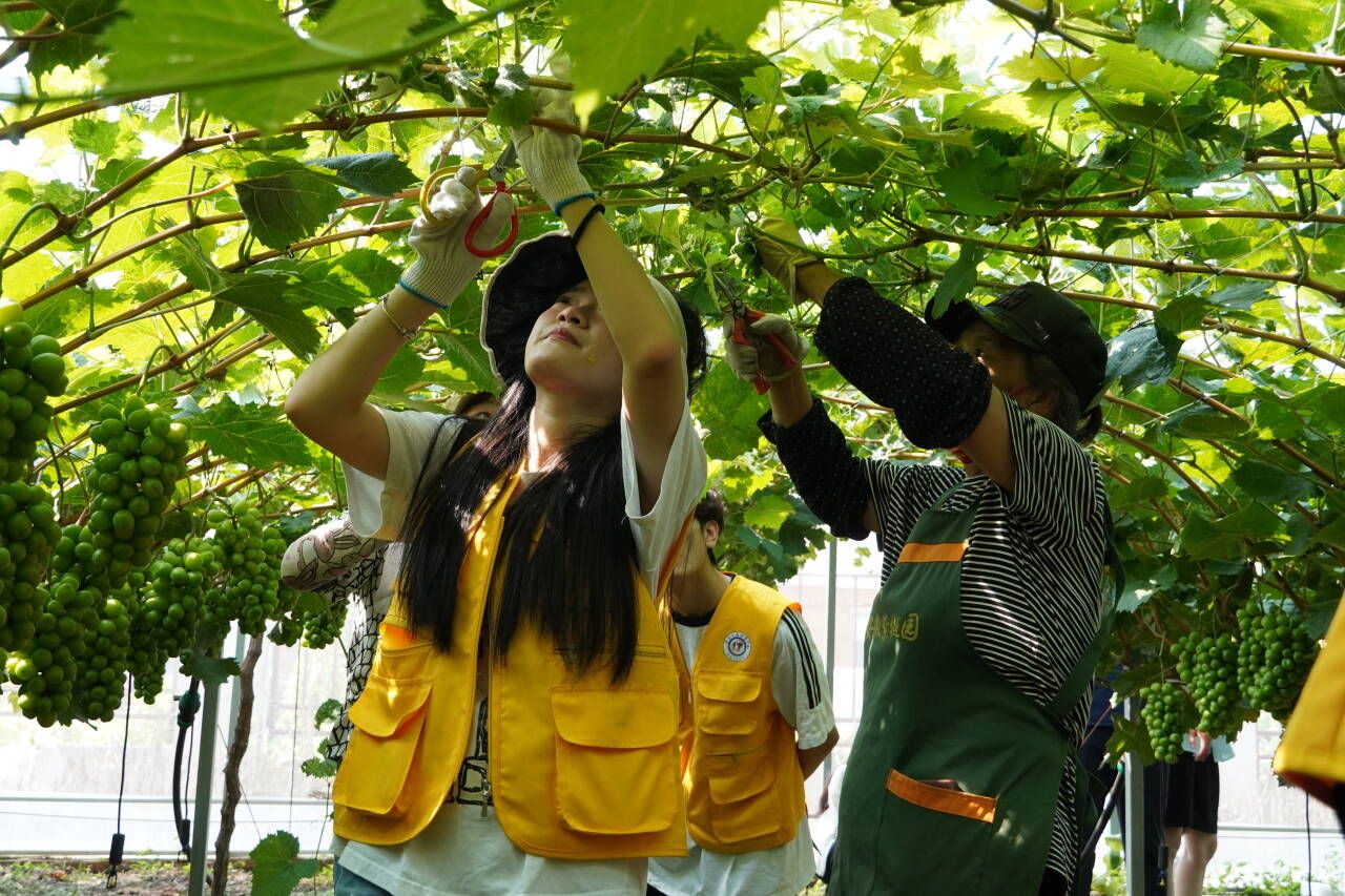“耕云播雨,新农人计划”助农活动开展以来,团队先走进当地葡萄采摘园和游客中心,向农户、村干部了解葡萄、蓝莓等特色农产品的种植规模、销售渠道及痛点。随后,成员们化身“助农主播”开启直播:主播们依次介绍农产品的特点,解答网友“如何辨别成熟度”“是否支持快递”等问题,互动区留言超300条,吸引500余人观看。此外,成员们协助农户修剪3亩葡萄的病弱藤蔓,清除杂草,优化果实生长环境,保障果实品质。从“知农情”到“助农产”再到“拓农销”,团队用实际行动助力农民增产增收。
