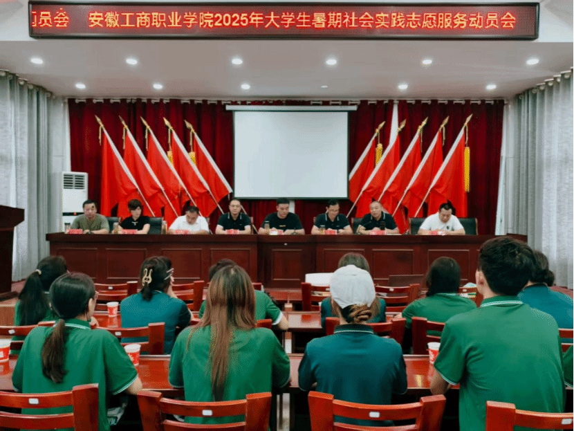 8月12日,安徽工商职业学院2025年“推普助力乡村振兴”全国大学生暑期社会实践志愿服务动员会在城西乡大龙村党员活动室举行。马院党总支书记、院长葛成飞、城西乡团委书记王凯、驻村工作队第一书记胡多军及村“两委”成员、指导老师出席会议,全体学生志愿者参加动员会。