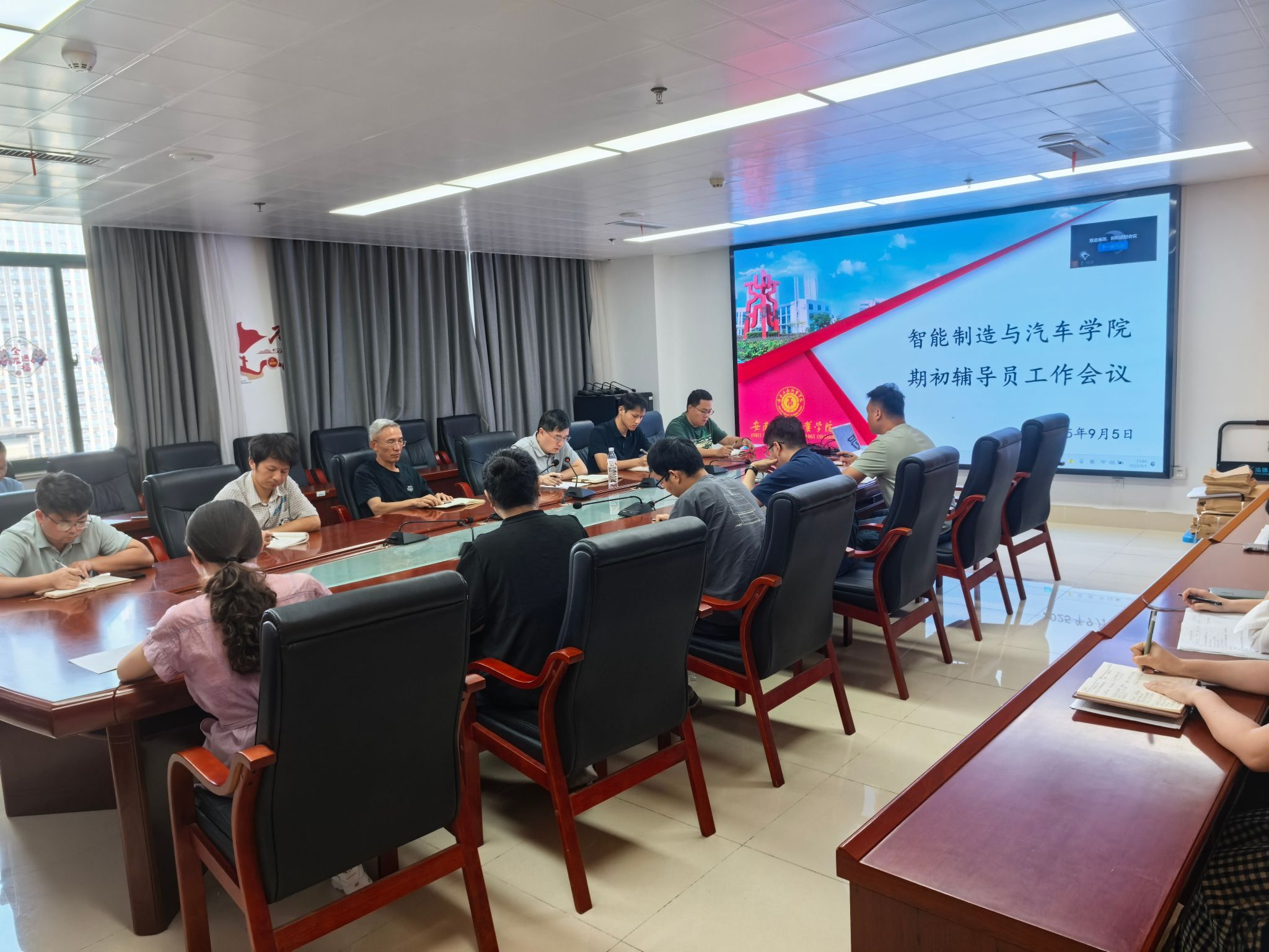 为了进一步明确新学期的工作目标和做好新学期各项学生工作,9月5日,智能制造与汽车学院在第六会议室召开辅导员工作会议。会议由学院党总支书记丁浩主持,学院党总支副书记盖昊宇和学院全体专兼职辅导员参加会议。