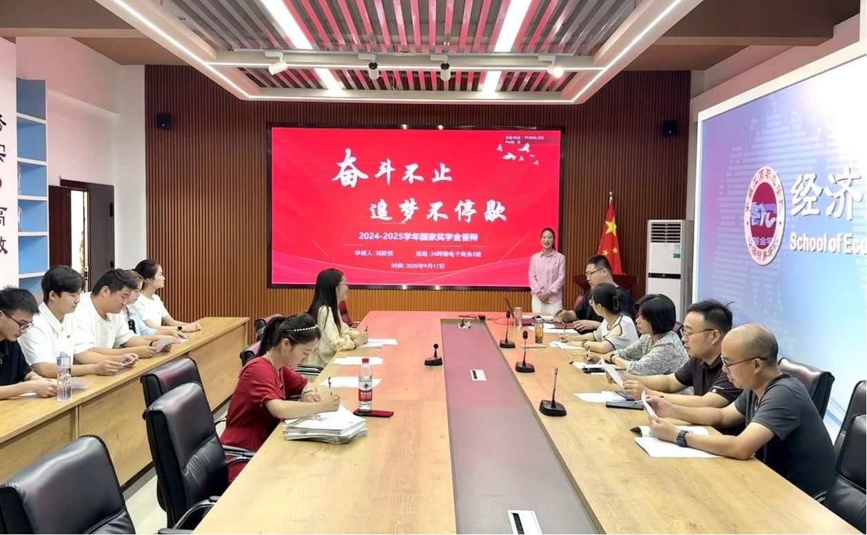 为做好国家奖学金评选工作,充分发挥国家奖学金的示范引领作用,彰显优秀学子的榜样力量,激发学生奋发进取、追求卓越的精神。9月17日,经济贸易学院在学院5楼教师能力提升中心召开2024-2025学年国家奖学金评审会。本次评审会由学院资助专员罗浩主持,学院全体党总支委员、学生科科长及辅导员担任评委,6名经过初步选拔的优秀学子参与学院最终评审。