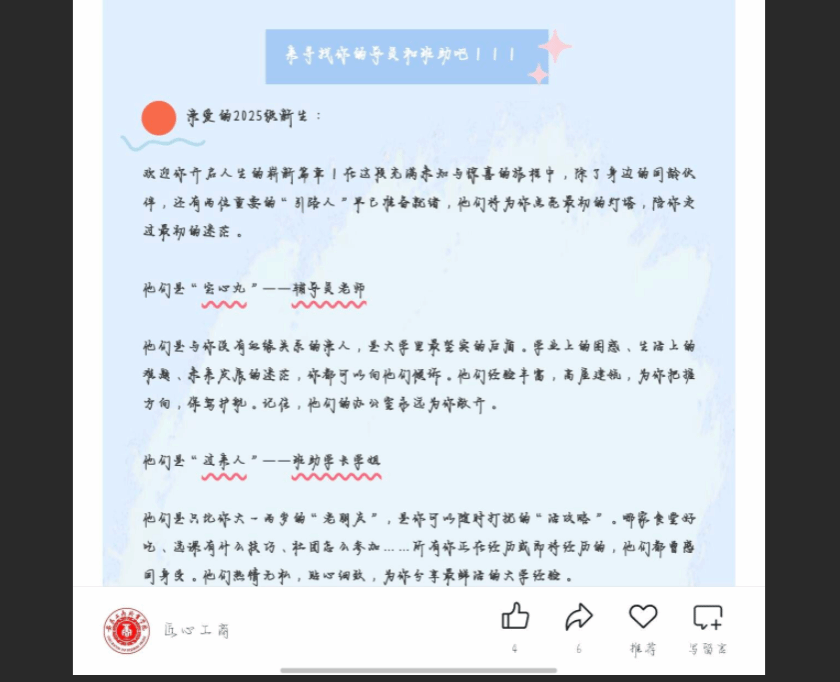 智能制造与汽车学院还通过学院公众号,提前发布了一系列“2025级新生入学指南”推文,内容涵盖校园导览、生活贴士、辅导员暖心寄语等,帮助新生未入校先知校,搭建起学院与新同学之间沟通的桥梁。