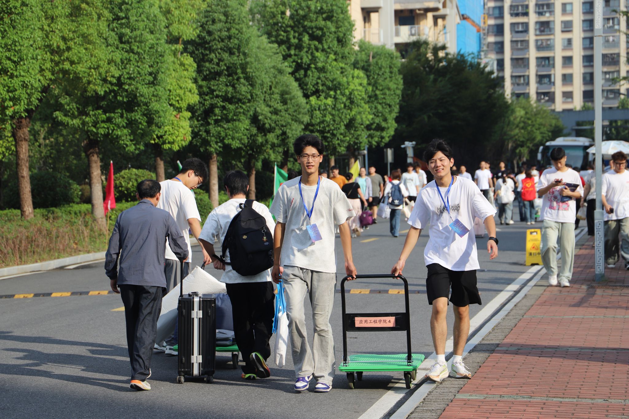 为给新生带来更为便捷高效的报到体验,学校升级了网上报到系统,可轻松完成缴费、申请“绿色通道”等,确保一切从容有序。迎新现场的大屏幕实时展播迎新数据,学院根据报到情况及时调整工作安排,保障迎新工作顺利推进。