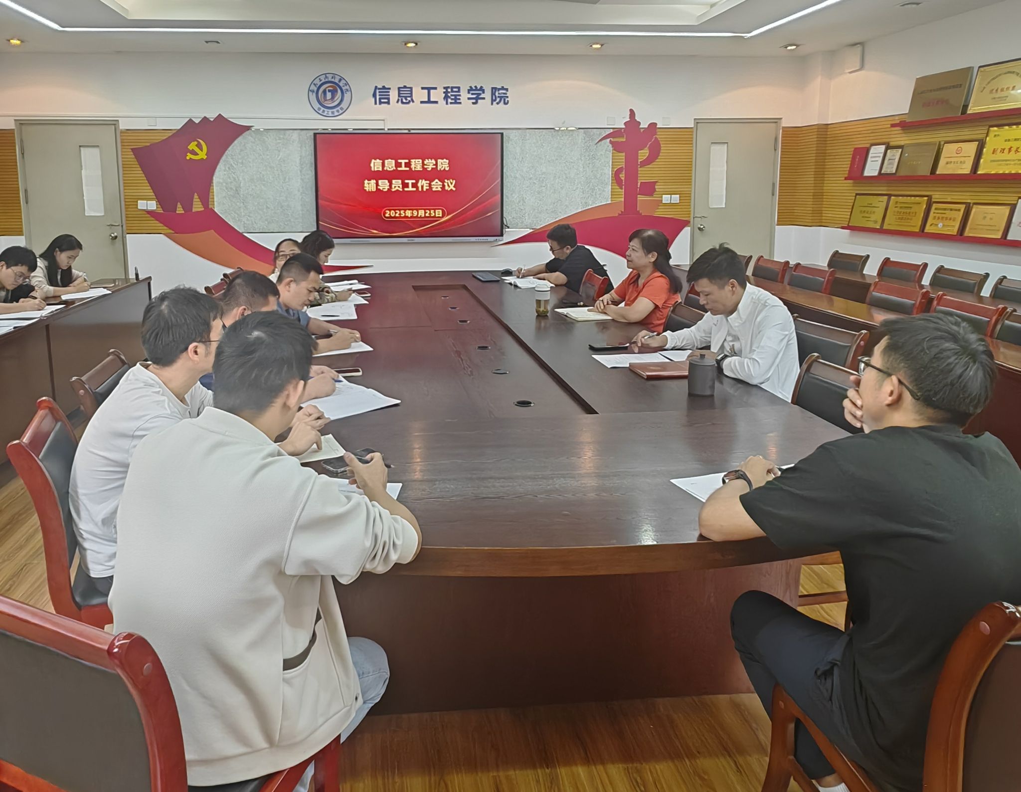 秋意渐浓,新程将启。为统筹推进新学期学生各项工作有序开展,强化责任意识,凝聚育人合力。 9月25日,信息工程学院在307会议室召开辅导员工作例会。学院党总支书记张静雯出席会议并讲话,全体辅导员参加会议,会议由党总支副书记陈夺主持。