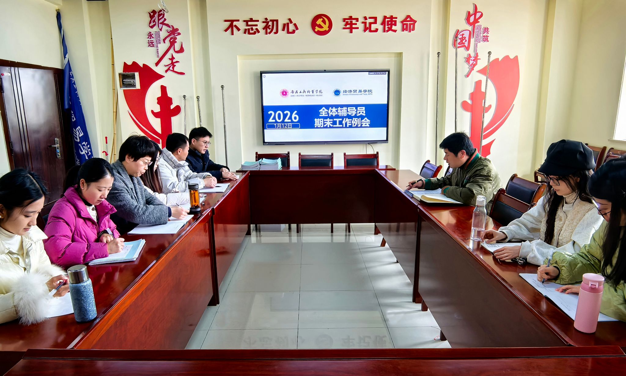 1月12日,经济贸易学院召开期末辅导员工作会议,传达学校学生工作会议精神,系统安排期末收尾、寒假衔接与开学准备各项工作。会议由学生科科长邬金主持,全体辅导员参加。