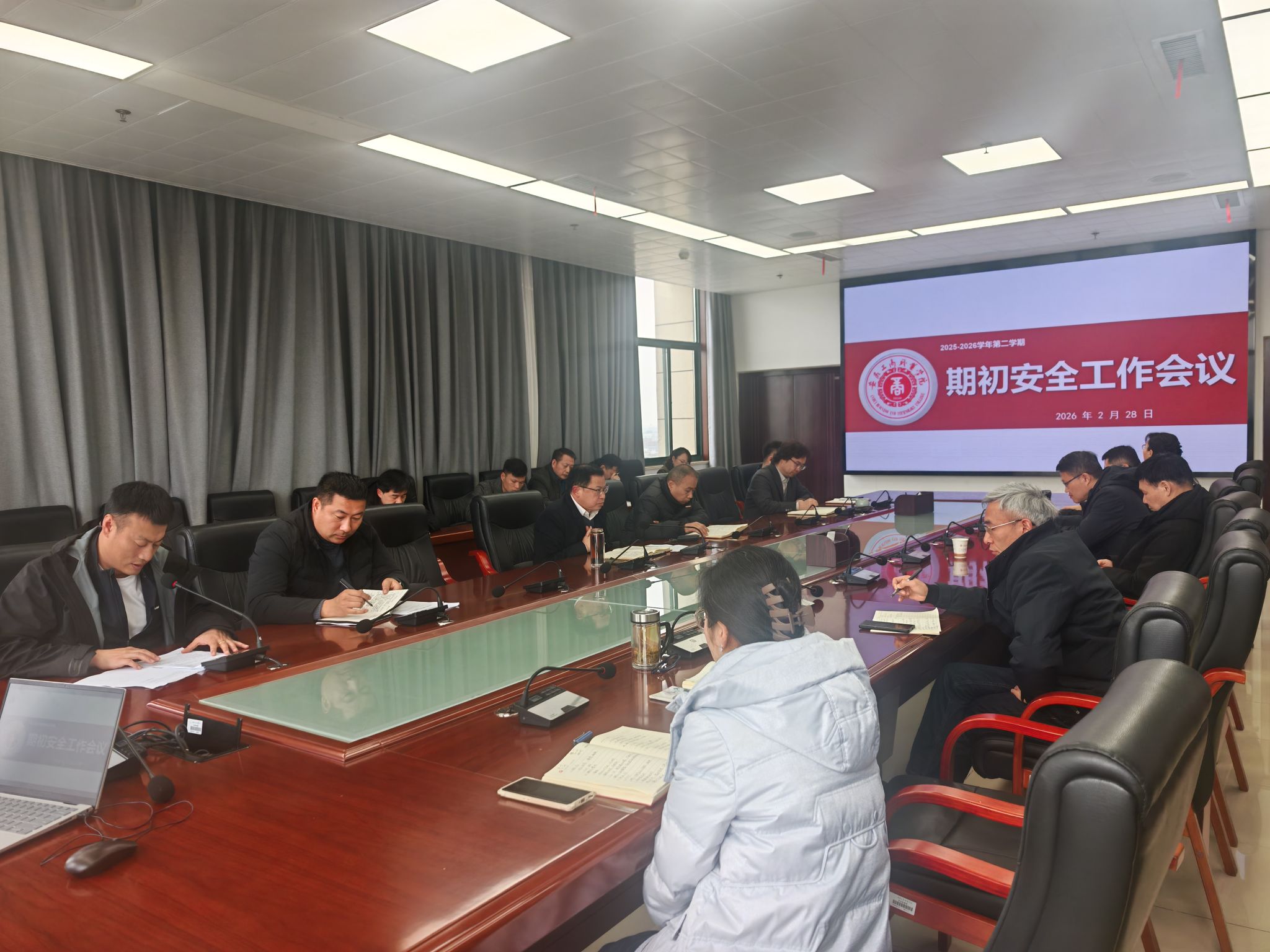 为切实筑牢校园安全防线,营造健康文明、安全有序的育人环境,保障新学期安全工作平稳开展,2月28日,学校在双凤校区综合楼第三会议室召开了2025-2026学年第二学期期初安全工作会议,对新学期安全重点任务进行全面部署。各学院、相关职能部门负责人参加会议,会议由党委委员、副校长胡捍东主持。