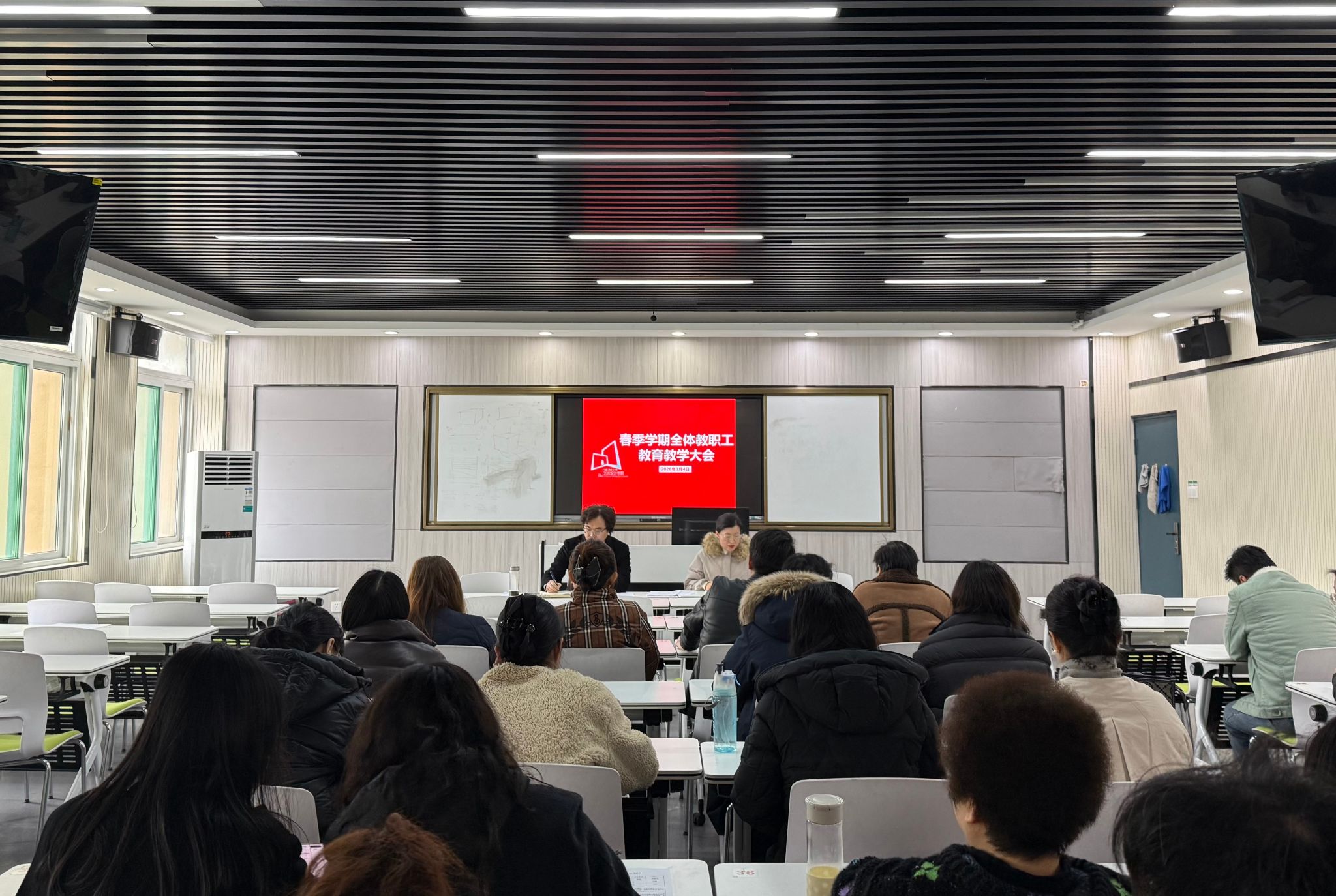 会上,教务科科长张翌首先对期初教学工作进行布置,包括期初教学检查、成绩复核、教材发放、教务系统实习审核提醒以及其他开学相关事项。