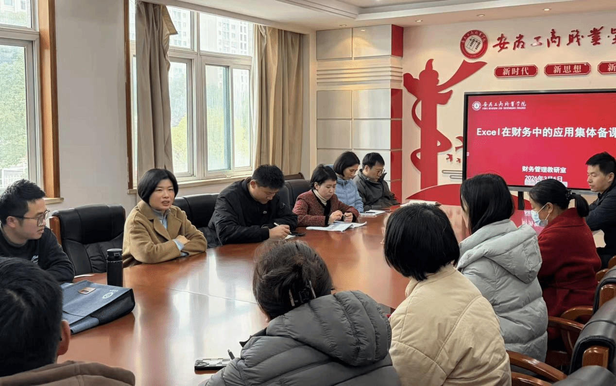 为提升课程建设质量,会计学院大数据与财务管理教研室于2026年3月5日组织召开《Excel在财务中的应用》课程集体备课会。会计学院院长张颖出席会议,课程负责人谷小城、全体课程授课教师参加研讨。