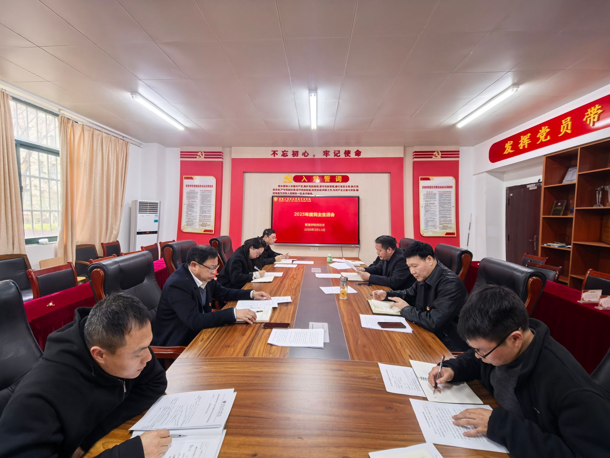 按照学校党委统一部署,3月11日,管理学院党总支召开2025年度民主生活会。党委委员、副校长胡捍东到会指导工作,组织人事处教师童菲列席会议。管理学院党总支书记曹大友主持会议并作表态发言,学院党总支副书记汪锋、副院长倪伟及班子其他成员参加会议。