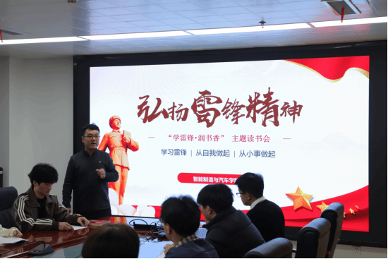 为深入弘扬雷锋精神,引导全院青年学子感悟雷锋精神的时代内涵,将无私奉献、爱岗敬业、精益求精的品质融入专业学习与日常实践,3月19日—3月20日,智能制造与汽车学院统筹部署、分层开展雷锋月主题读书活动,学院层面组织集中活动,各班级同步推进观看学习、读书分享,实现活动全覆盖,让雷锋精神在全院青年中落地生根。