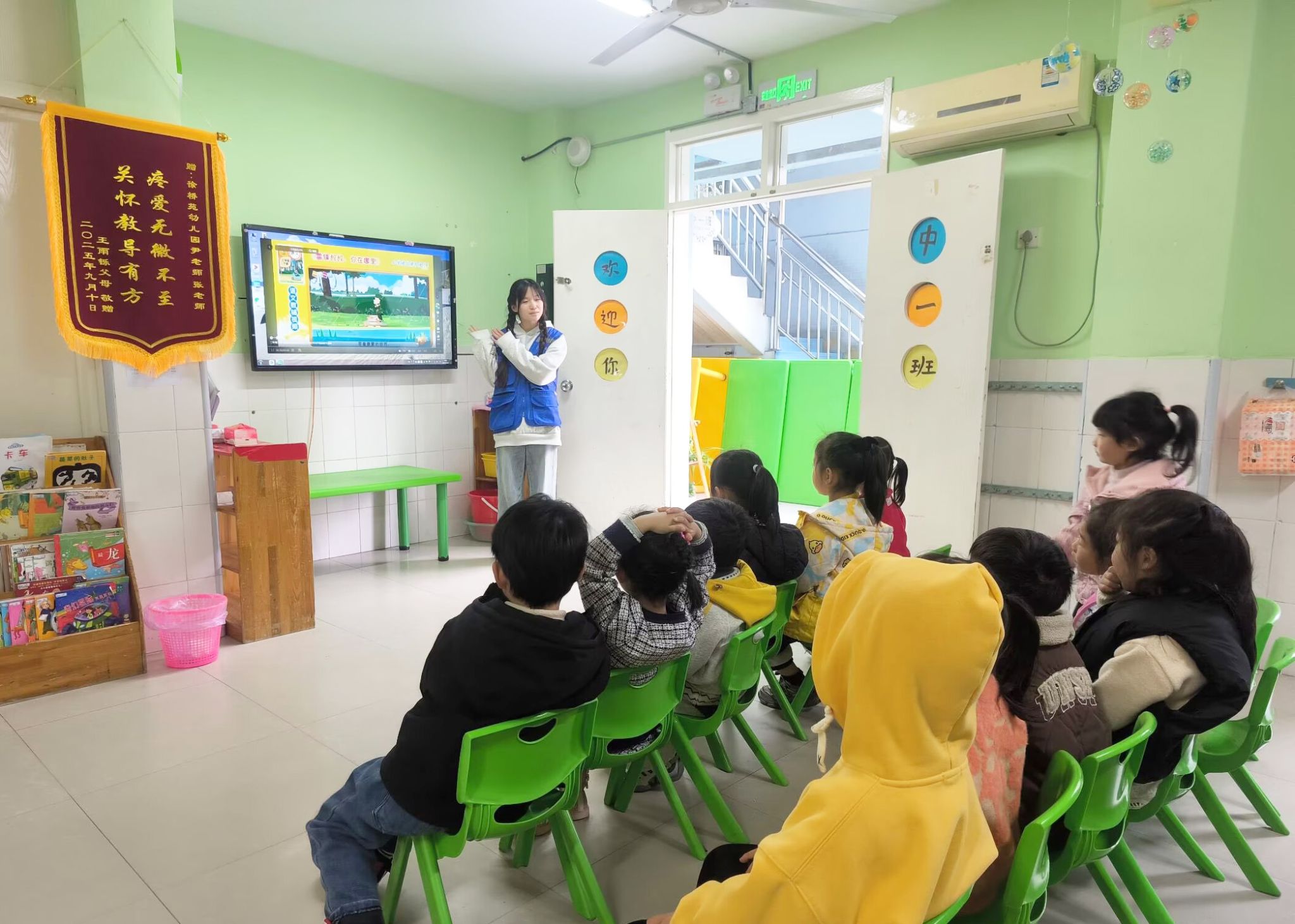 在“爱心承诺”跟读环节,志愿者们带领小朋友们逐字逐句朗读:“我承诺:做一个善良的孩子,主动帮助别人,从现在开始,做一个合格的小雷锋!”整齐响亮的童声回荡在教室中,通过仪式感强的集体承诺,进一步加深了孩子们对雷锋精神的情感认同。此外,志愿者们还组织了趣味互动游戏。欢快的音乐声中,小朋友们积极参与、默契配合,现场欢声笑语不断。孩子们在游戏互动中增强了合作意识,体悟分享与互助的快乐。