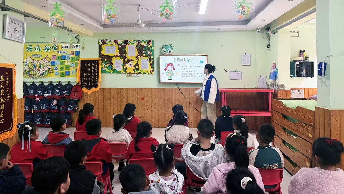 活动前期,志愿者们结合幼儿认知特点,精心制作了图文并茂的PPT课件,系统梳理了雷锋同志的生平事迹和感人故事。现场,志愿者们用生动的语言和鲜活的图片,向小朋友们讲述了雷锋助人为乐、无私奉献的先进事迹,引导小朋友们初步理解“帮助他人、快乐自己”的朴素道理。互动问答环节中,小朋友们踊跃发言,分享自己在生活中帮助他人的小故事,现场气氛活跃。
