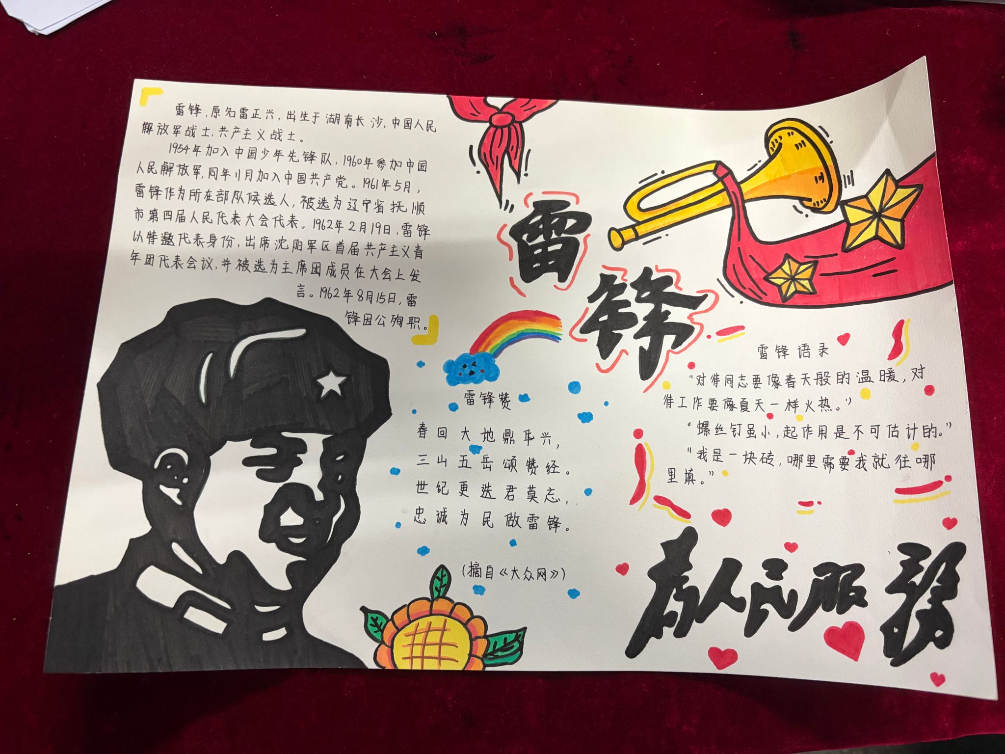 为深入学习贯彻雷锋精神,引导青年学子将奉献精神内化于心、外化于行,近日,智能制造与汽车学院以“雷锋月”为契机,成功举办雷锋精神手绘海报活动。