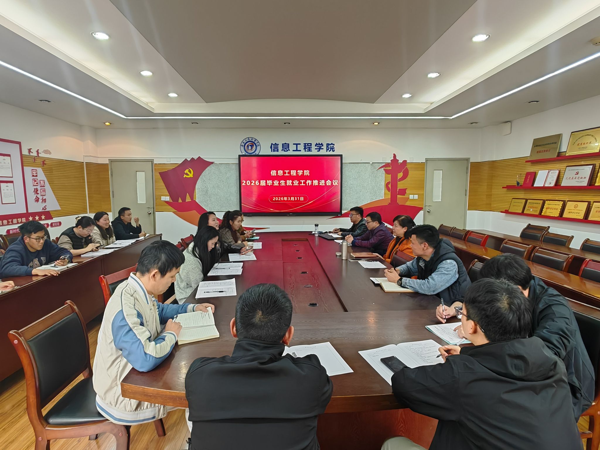 清明假期将至,为切实筑牢校园安全防线,扎实推进2026届毕业生就业工作,进一步统一思想、明确任务、压实责任,3月31日,信息工程学院在学院会议室召开辅导员工作例会暨2026届毕业生就业工作推进会。学院党总支书记张静雯出席会议并讲话,全体辅导员参加会议,会议由学院党总支副书记陈夺主持。