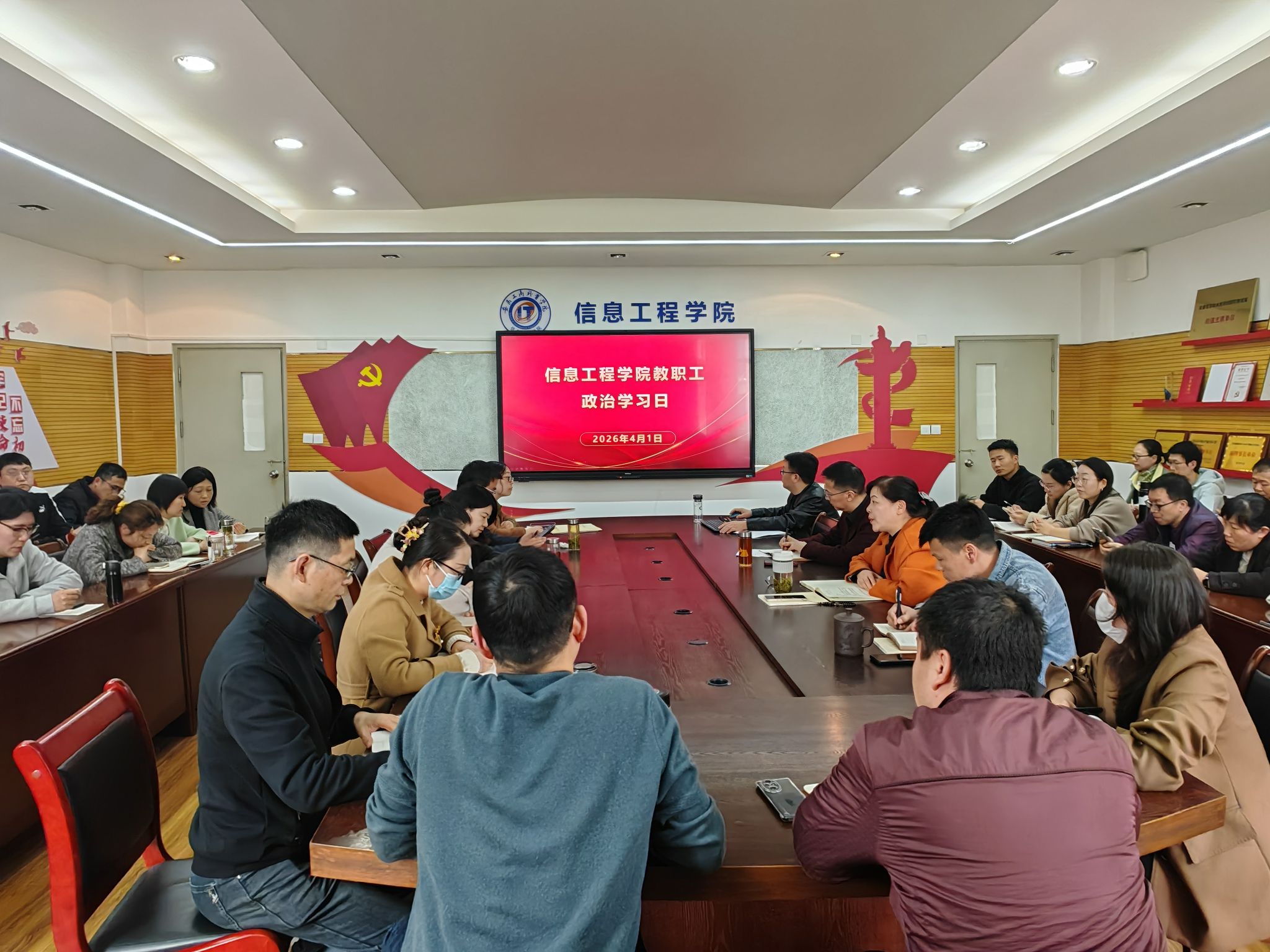 4月1日下午,信息工程学院党总支在党员活动室召开4月份教职工政治理论学习会议,会议由党总支书记张静雯主持,全体教职工参加会议。