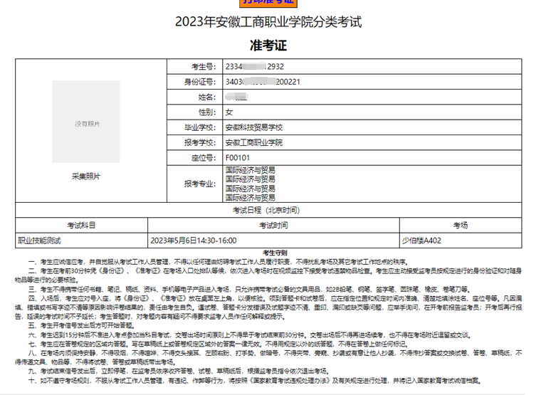 安徽工商职业学院分类考试网上报名、缴费及准考证打印操作指引