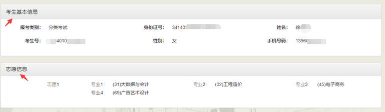 登录成功后请核对“基本信息”和“志愿信息”。