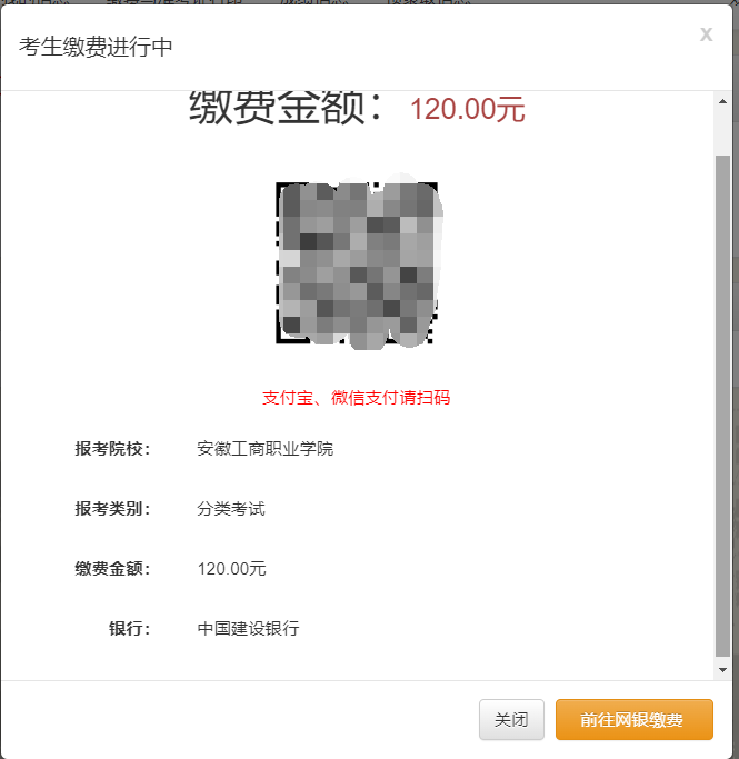 具备支付宝和微信支付条件考生可以扫描二维码支付。
