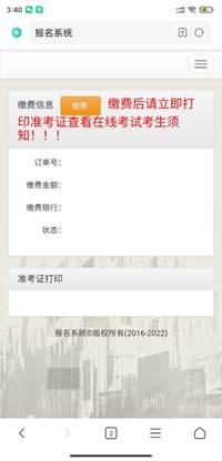 信息无误后点击“缴费与准考证打印”,进入缴费页面。