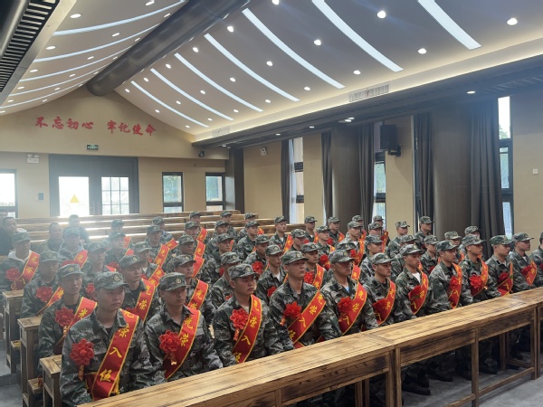 欢送会上,新兵们身着新军装,胸戴大红花,个个精神饱满,整装待发。2020级新兵入伍学生蒯学龙代表全体新兵表示:永不愧对自己的军装,不愧母校对自己的期望,无论到了哪个岗位都坚定信念,努力学习专业知识,努力站好每一班岗,执行好每一次任务,不负国家使命,展现军人雄威。
