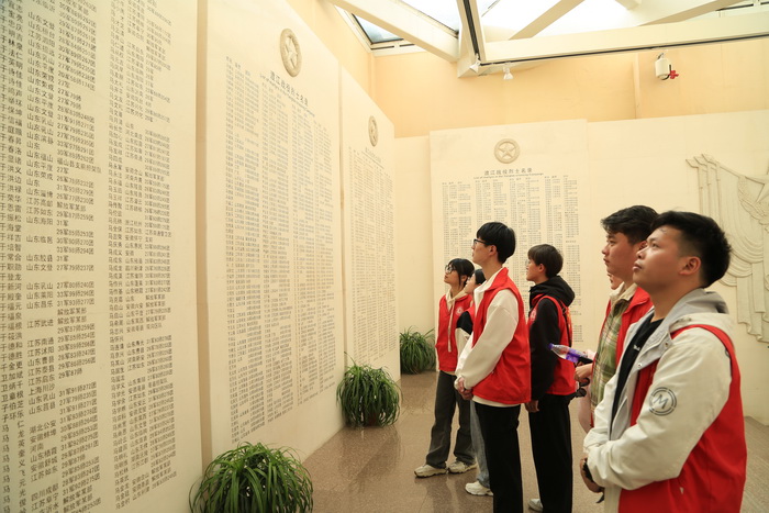 接着全体学生向革命先烈献花并瞻仰革命先烈塑像、向革命先烈默哀,面对鲜艳的中国共产主义青年团团旗重温了入团誓词,流程结束后,全体学生参观了渡江战役纪念馆六大展厅,以及革命先烈的壮烈事迹;观看陈列的枪炮弹药、衣物鞋帽、文件器具等革命烈士生前使用过的物品;感受着声、光、电等现代科技重现“钟山风雨起苍黄,百万雄师过大江”的壮观场景。最后全体学生参观了安徽名人馆,通过瞻仰不同时期不同领域的安徽名人,更加深刻的感知安徽物华天宝、人杰地灵的美好形象。