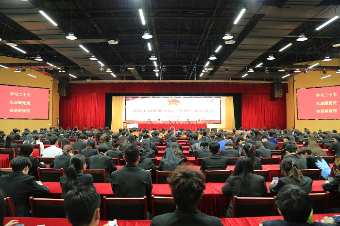 2023年5月6日中午,学校在大学生活动中心召开“五四”表彰大会。校领导齐建平、李雪、胡捍东、陈章奇、吴松飞出席会议,校党委委员、全体中层干部、各二级学院团总支书记、团员青年代表共350多人参加了大会。大会由党委副书记陈行主持。