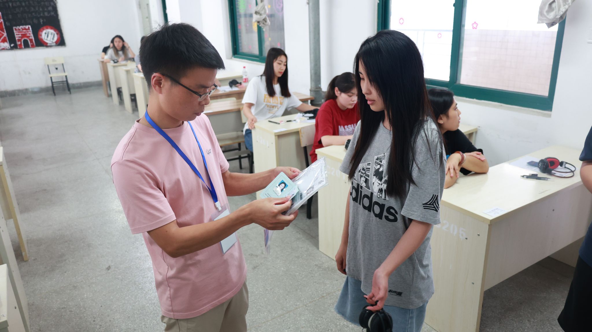 考试期间,考试领导小组对考试的组织保障、监考人员履职、考试运行状况等进行检查和巡视;考务人员及监考人员认真履职,保证考生入场、证件查验、身份核实、考生签到、听力播放、收卷收发等各个环节严谨、规范、高效、有序。